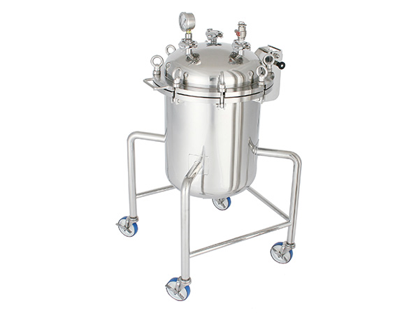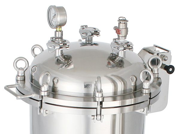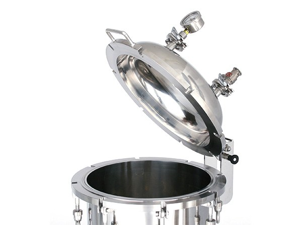 〇蓋の開閉をしやすくした、ステンレス圧力容器のオーダーメイド事例です。