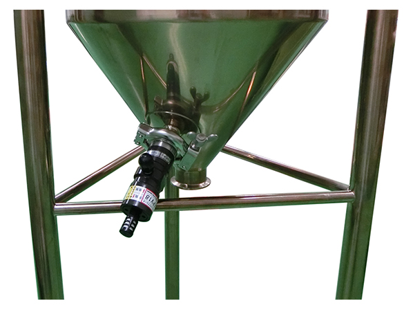 地ビール生産工程の原料投入用で使用される、ステンレスホッパー型容器のオーダーメイド事例です。