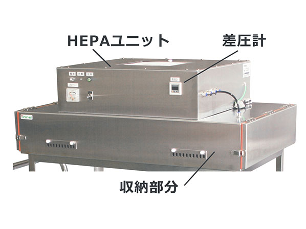 昇降機能のないHEPAユニット付き台車もあります。