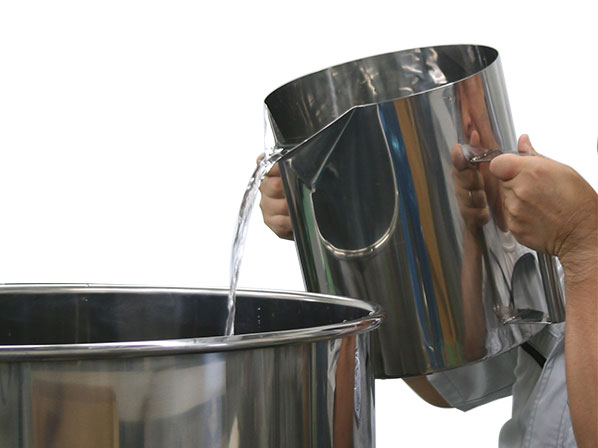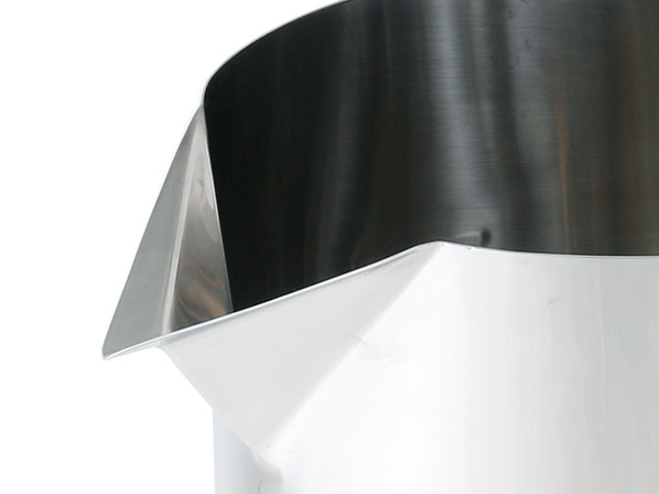 高い位置から、ゆっくり注いでも液だれ防止ビーカーなら液だれを起こさず、一度に大量の薬剤・原料を汚すことなく投入することができます。10Lより大きい液だれ防止ビーカーの製作も可能です。お気軽にご相談ください。