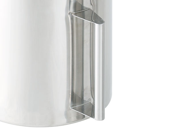 ・汚れが溜まらないよう、取っ手の溶接部分は隙間のない全周溶接を施し、容器の縁には折り返しのないサニタリー仕様です。