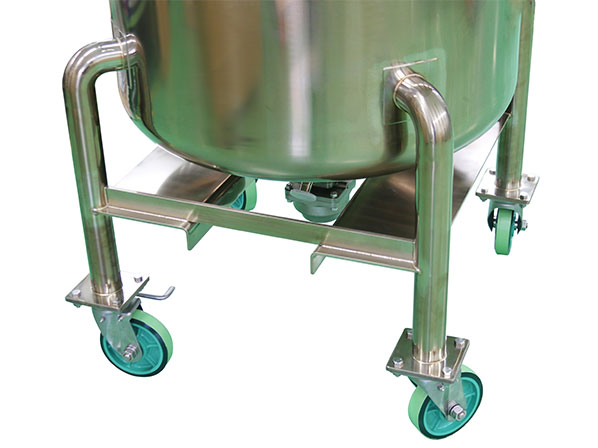・タンクの移動など取り扱いしやすいように、キャスター吊りラグ(吊り上げ用金具)フォーク座(フォークリフト用金具)を取り付けています。