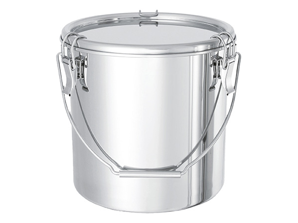 こちらのオーダーメイド事例のベースとなる製品として、「テーパー型吊り下げ式密閉容器(クリップ式)TP-CTB-33」があります。また、標準で目盛りが付いたステンレス容器もあります。