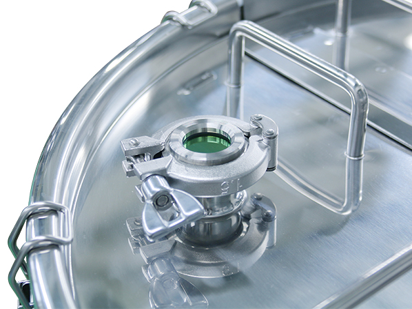 ○温度測定のため特殊なガラスを採用した、のぞき窓(サイトグラス)のオーダーメイド事例です。
