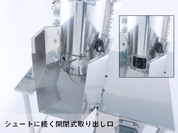 原料に容器下部のノズルから蒸気を当てて予備発泡し発泡ビーズにする工程で使用する、ステンレス製品のオーダーメイド事例です。