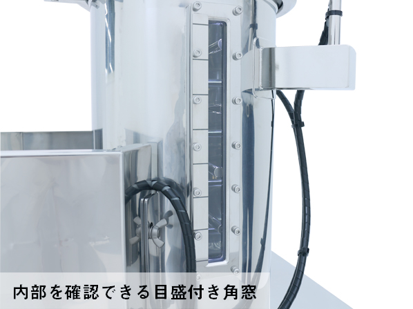 ・内容量など内部の様子が確認できるよう、1L毎の目盛付きの角窓を取り付けました。