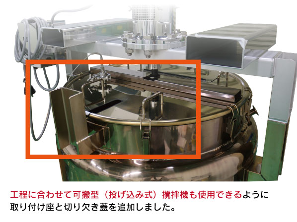 ・品種に応じて撹拌方法を変更できるように、2通りの撹拌機設置方法に対応できるようにしています。