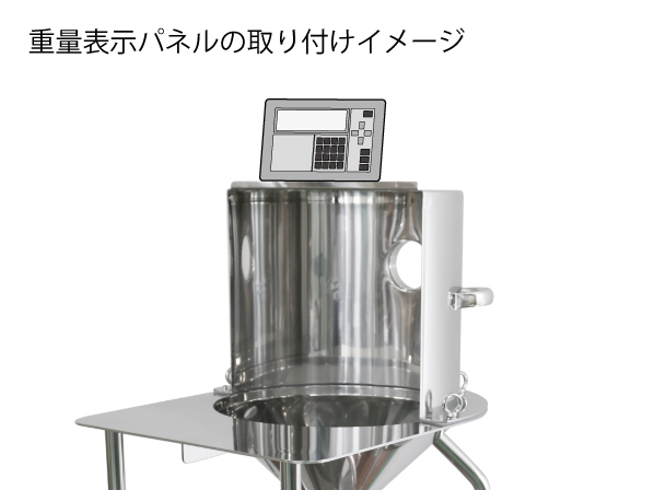 ・重量表示パネルにて、受け容器に入った粉の重量を確認しながら投入量を調節します。