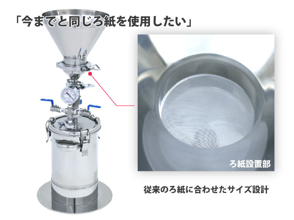 フィルター部は、従来使用していたろ紙に合わせたサイズにしています。