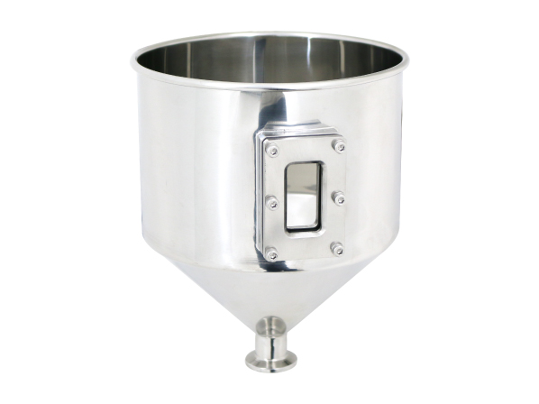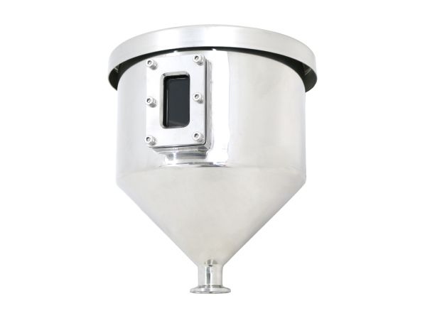 液中の固体がどのくらいの高さまで溜まっているか見られるように、ホッパー側面に角フランジのぞき窓を取り付けました。