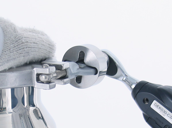 このソケットをトルクレンチと組み合わせることで、クランプバンドの締め付けトルクを標準化できます。これ一つで異なるサイズ・メーカーのクランプバンドに対応可能です。