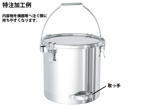 手軽に持ち運べる、バケツタイプの密閉容器です。クリップで簡単に密閉できます。