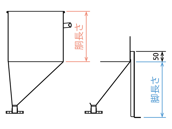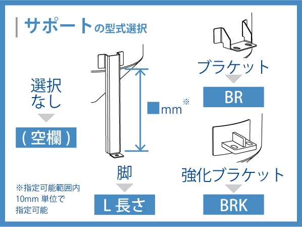 [サポート] なし・脚(長さ指定可能>詳細)・ブラケット・強化ブラケット