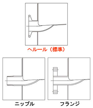 内容物や配管に合わせて、排出口(ドレン)の「種類」や「サイズ」を変更できます。 お客様ご指定の継手での製作も可能です。