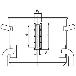 ○容器の側面に溶接にて取り付ける長方形ののぞき窓(サイトグラス)です。