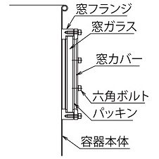 のぞき窓は蓋などに取り付けて内部を確認できますが、角フランジのぞき窓は容器側面に取り付けて内部のレベルなどを確認できます。