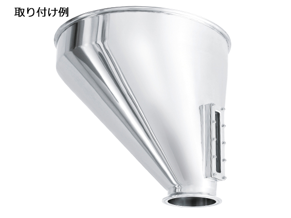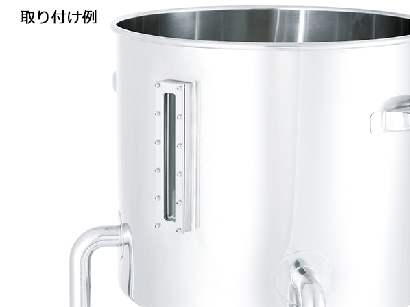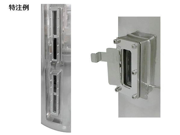ステンレス容器の側面から内容物のレベルや状態を確認したい場合のオプション加工です。
