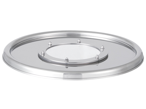 ステンレス容器用蓋に透明アクリル樹脂製の窓を取り付けるオプション加工です。