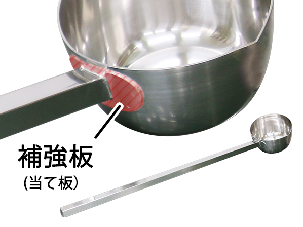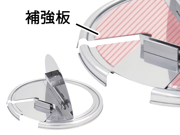 ○補強板(当て板)を取り付けることで強度が上がり、歪みをおさえて変形や破損を防ぎます。