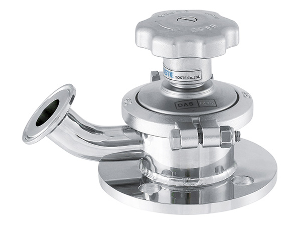 容器の鏡底に直接取り付けるダイヤフラム式バルブです。 液溜りがほとんど無く排出性の優れたバルブです。 洗浄時にはバルブ本体の分解、組立ができます。