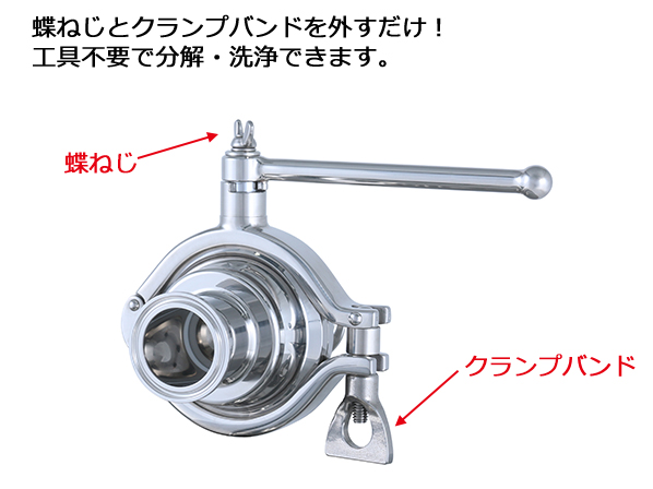 バルブ内に液が溜まらないポケットレス構造。ヘルール式の流体用ボールバルブです。