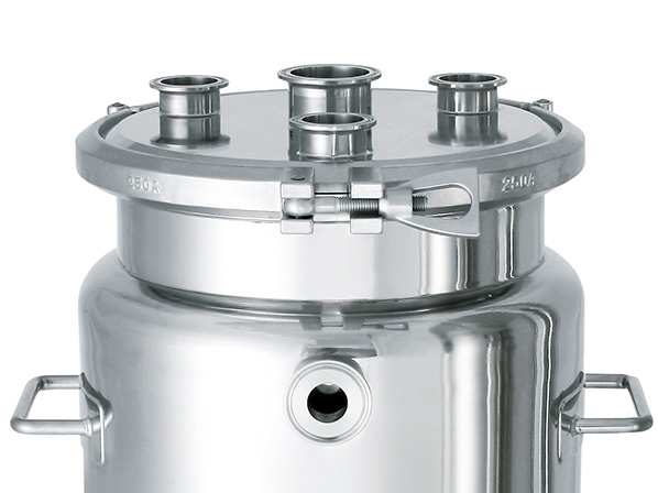 排出口にはヘルール接続のバルブを取り付けできます。バルブの選定もお任せいただければ、容器と一緒にご提供できます。タンク底バルブでの製作も可能です。