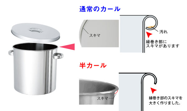 縁巻き部のすき間をあえて大きく作ることで 縁巻き内部にゴミが溜まりにくく・洗浄しやすくなり、サニタリー性が向上します。