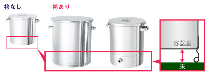 より小さいサイズの容器に袴をつける・袴を角棒で製作し洗浄しやすくすることも可能です。