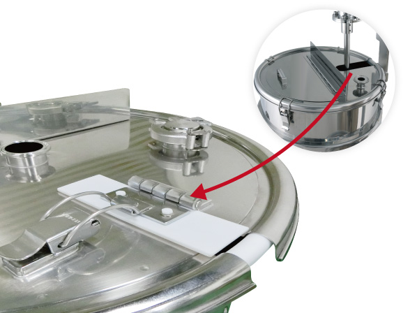 「撹拌機設置部からの異物混入を防止」をカスタマイズで実現しました。